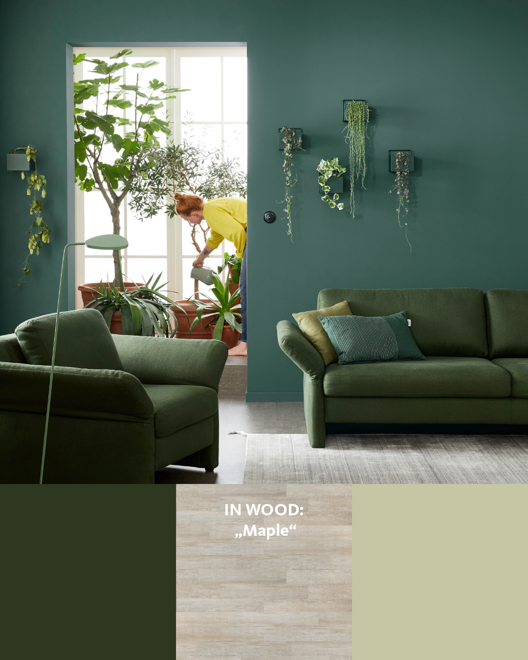 Die Farbe Grün mit ihrer beruhigenden Kraft und den unterschiedlichen Nuancen schenkt Räumen Harmonie. So kann man, wie in der Natur vorgeführt, auch viele Grüntöne miteinander kombinieren oder ganze Wände tönen – ohne ihrer überdrüssig zu werden. So hat man auch im Winter die volle Natürlichkeit in seinem Zuhause.